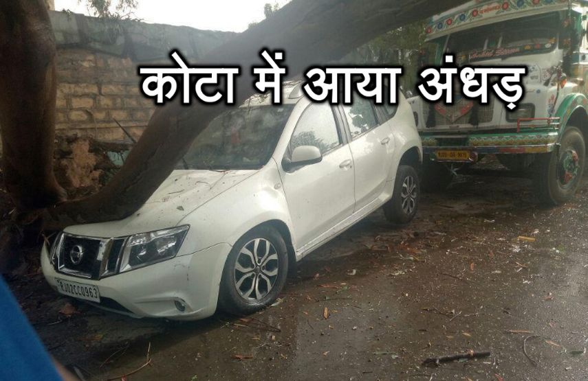 शहर के में बरसात भी हुई। आंधी के चलते शहर में कई जगह पेड़ धराशायी हो गए और टिन टप्पर ,होर्डिंग्स उड़ गए | बंगाली कॉलोनी में कई टिन शेड उड़ गए | अंधड़ का असर इतना था कि रावतभाटा रोड स्थित मोबाइल मार्केट में कई दुकानों में दरार तक आ गयी | वाहन चालकों को काफी परेशानी का सामना करना पड़ा | खासकर दोपहिया वाहन चालकों ने अंधड़ के दौरान अपने वाहनों को सड़क किनारे लगा दिया |कोटा में आये इस अंधड़ की चपेट में इंसानो के साथ ही पक्षी भी आ गए |