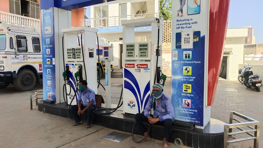 कुचामन के एक पैट्रोल पम्प में ठाले बैठे सेल्सेमैन।