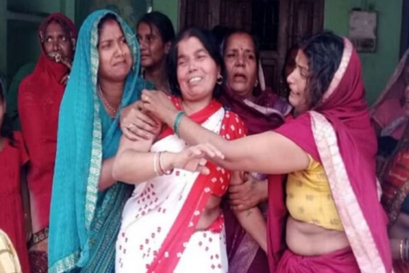 कुशीनगर में शौचालय के टैंक में गिरने से हुई 4 लोगाें की मौत के बाद रोते-बिलखते परिजन।