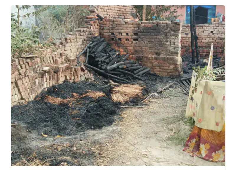 House burnt in UP : कुशीनगर जिले के अहिरौली थाना क्षेत्र के अनंतपुर गांव में आधी रात को अचानक एक दलित की झोपड़ी धू-धू कर जलने लगा। संयोग ठीक था की वहां कोई था नहीं , जिससे जनहानि नही हुई।झोपड़ी में रखा सारा सामान जलकर राख हो गया। आग की लपट देख जुटी गांव वालों की भीड़ ने आग बुझाने का पूरा प्रयास की लेकिन झोपड़ी जलने से नही बचा पाए।