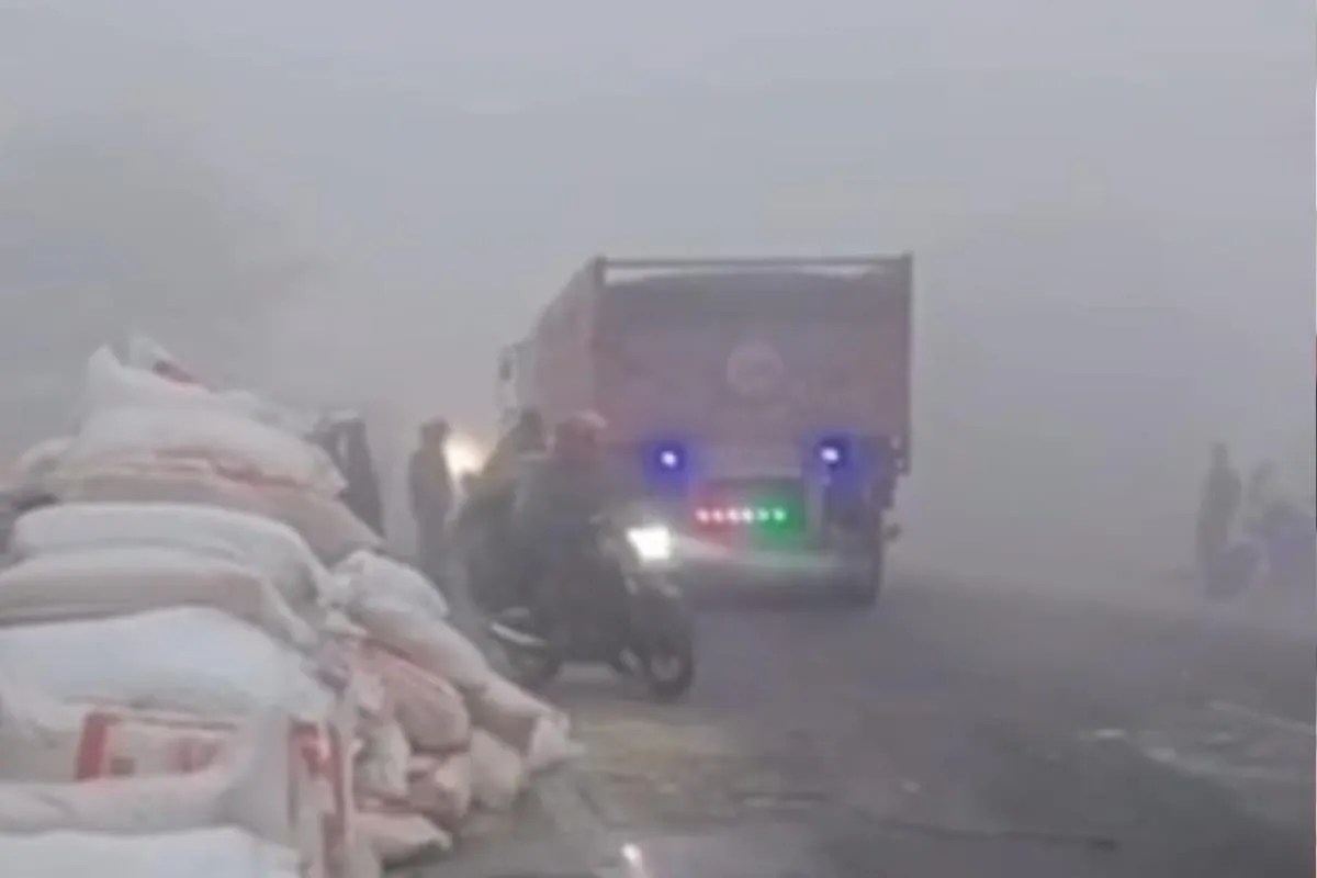 फोटो सोर्स: सोशल मीडिया, कोहरे में भिड़े आधा दर्जन वाहन