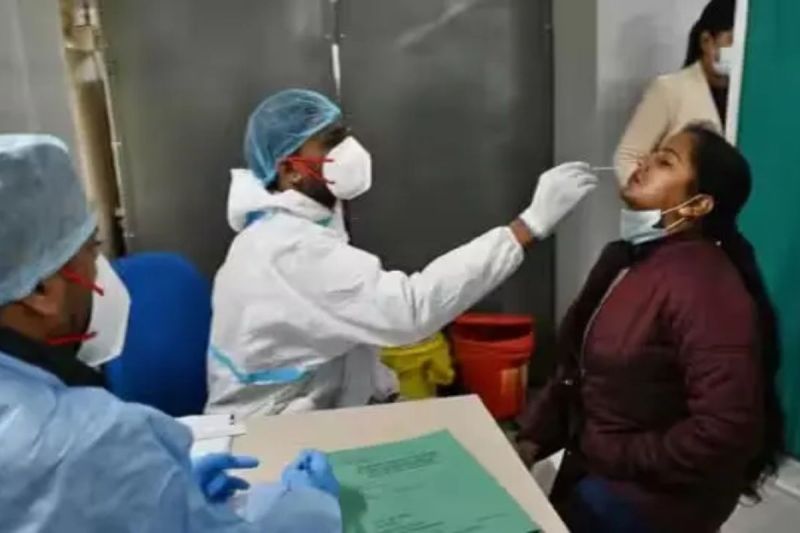 कोरोना वायरस का टेस्ट कराती हुई लड़की