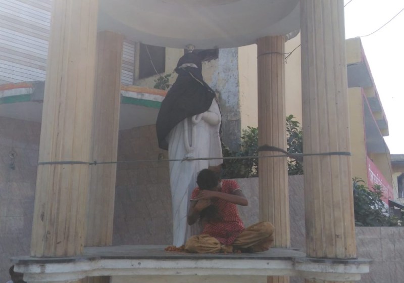 पूर्व प्रधानमंत्री इंदिरा गांधी की मूर्ति को पहनाया बुर्का, कांग्रेसियों का फूटा गुस्सा