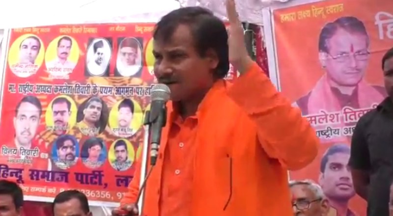 कमलेश तिवारी ने महापंचायत के दौरान कहा कि आज समाज मे हिंदुओ के हित की बात करने वाले लोगों की कमी है। उन्होंने अपने संबोधन में कहा हिदू समाज पार्टी सिर्फ हिंदुओ के हित की बात करती है। फिर वह किसी भी जाति का हो। ये भाजपा सरकार चाहे योगी हो मोदी इन्होंने हिंदुओ के वोट लेकर उनके साथ छलावा किया। अगले चुनाव में हर हिन्दू ये प्रण कर ले। कि जो भी हम हिंदुओ के हित की बात व काम करेगा उसी को हमारा वोट जाएगा। फिर वो कोई भी पार्टी हो। अब तक 70 साल जो नही हुआ वो हम करेंगे। पाकिस्तानी मुसलमान जो को अवैध रूप से भारत मे रह रहे हैं। इनको हम यहां से निकल बाहर करने का काम हम करेंगे। केरल कश्मीर बंगाल उदाहरण हैं।