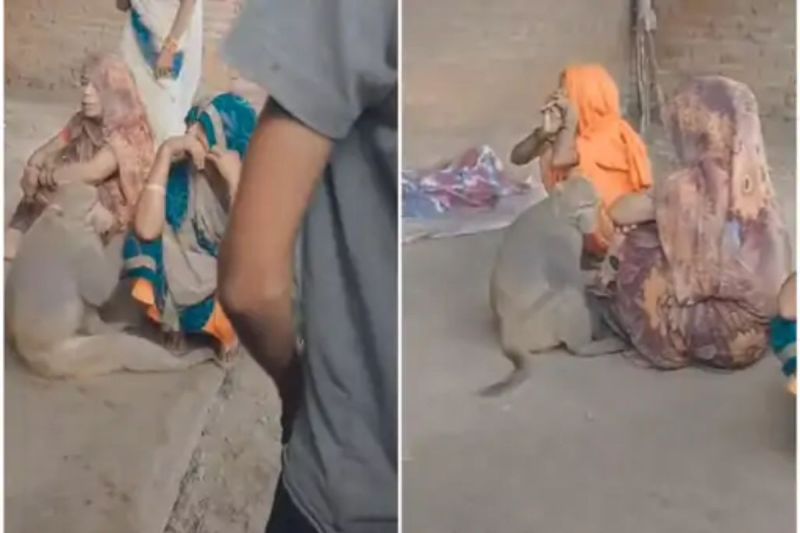 महिलाओं के बीच बैठा बंदर