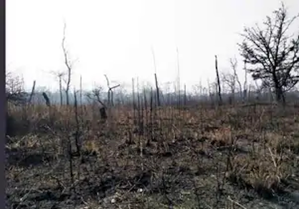 जंगल में अचानक लगी भीषण आग से मची अफरा तफरी, कई पेड़ हुए बर्बाद, जंगली जानवरों के मरने की आशंका