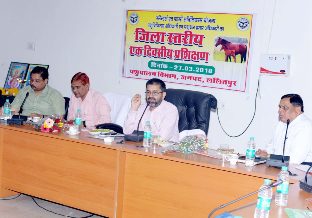 ललितपुर. जिलाधिकारी मानवेन्द्र सिंह की अध्यक्षता में विकास भवन परिसर स्थित सभागार में ग्लैन्डर्स एवं फार्सी सर्विलियन्स योजना के अन्तर्गत सर्विलेंस हेतु प्रशिक्षण कार्यक्रम आयोजित किया गया। जिलाधिकारी ने पहले मां सरस्वती एवं भारतरत्न डाॅ0 भीमराव अम्बेडकर जी के चित्र पर दीप प्रज्ज्वलन एवं माल्यार्पण कर एक दिवसीय प्रशिक्षण कार्यक्रम का शुभारम्भ किया। इसके उपरान्त मुख्य पशु चिकित्सा अधिकारी डाॅ0 एस0के0 शाक्य द्वारा उपस्थित जिलाधिकारी एवं अतिथिगणों का आभार व्यक्त किया गया। इसके पश्चात उन्होंने अश्व प्रजाति के पशुओं में होने वाले ग्लैन्डर्स एवं फार्सी रोग के बारे में विस्तार से जानकारी दी।