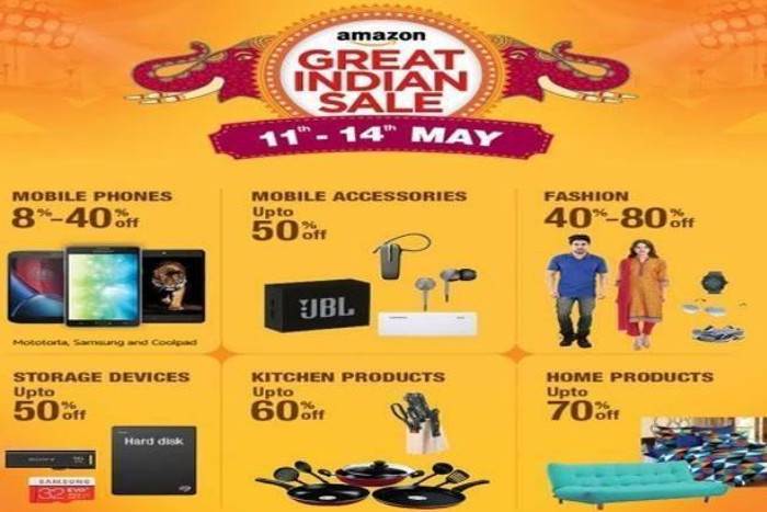 अमेजॉन ने गुरुवार से ग्राहकों के लिए ग्रेट इंडिया सेल की शुरुआत कर दी है। अमेजॉन की यह सेल 11 मई से 14 मई तक है। वहीं इस सेल में ग्राहक स्मार्टफोन से लेकर कंज्यूमर ड्यूरेबल प्रोडक्ट पर भारी छूट का फायदा उठा सकते हैं।