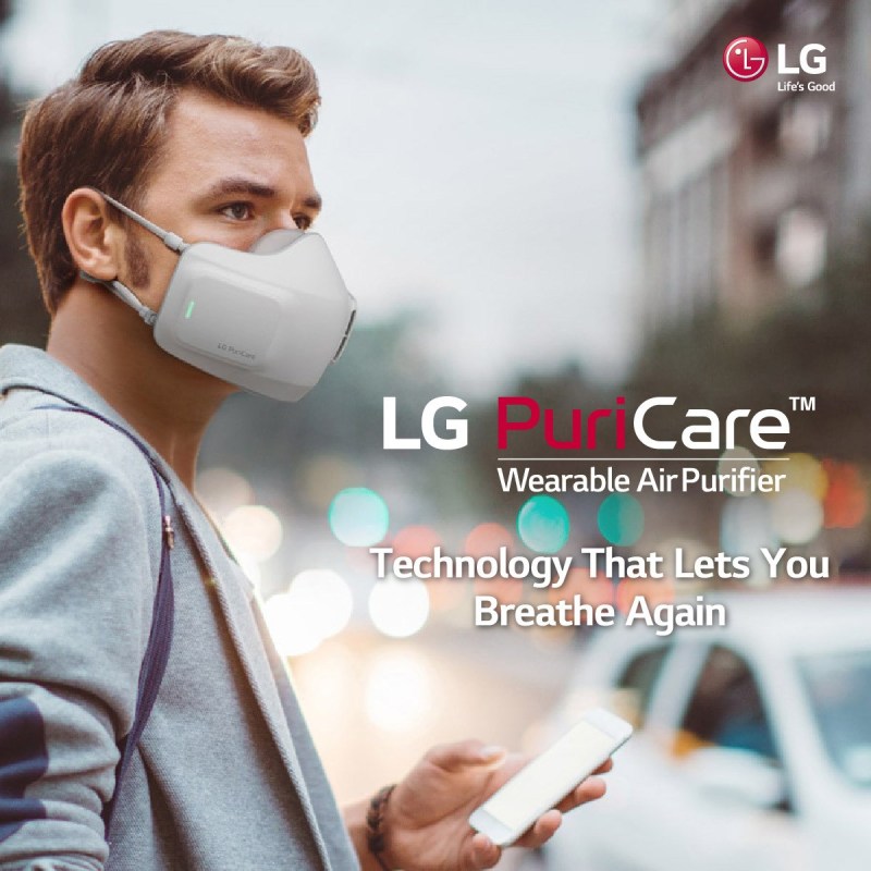 एयर प्यूरीफाईंग मास्क - यह एक एयर प्यूरीफाईंग मास्क है। इसमें LG के बने डुअल पंखे लगे होते हैं, जिससे सांस लेने के लिए मास्क के अंदर साफ हवा मिलेगी और सुविधा रहेगी। इसकी टेक्नोलॉजी से यह मास्क यूज़र के सांस लेने के पैटर्न के हिसाब से हवा के प्रवाह को स्वचालित रूप से नियंत्रित करेगा।