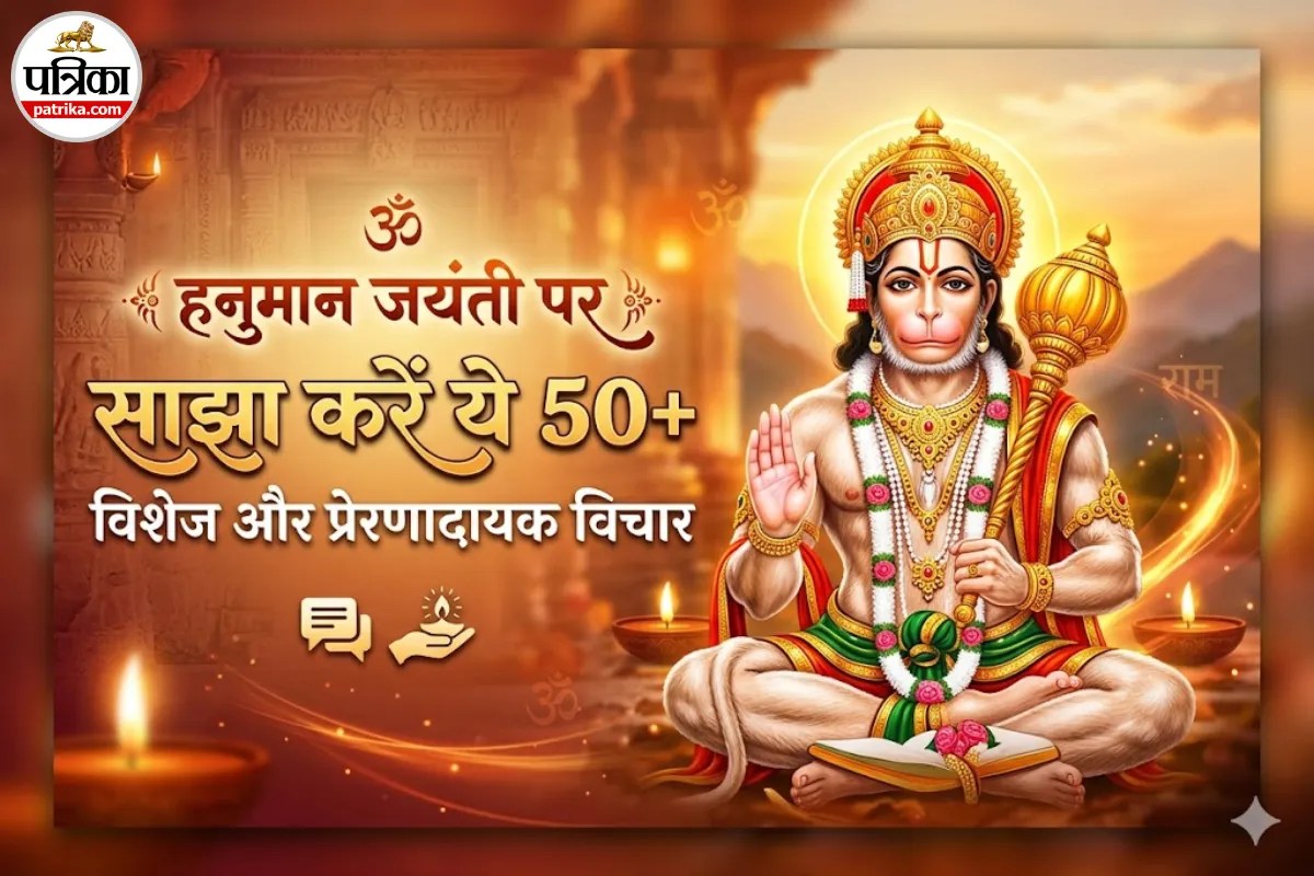 50+ Hanuman Jayanti 2026 Wishes in Hindi: हर साल हनुमान जी के जन्म दिवस को हनुमान जयंती के रुप में चैत्र माह की पूर्णिमा को बड़े ही धूमधाम से मनाया जाता है। दृक पंचांग के अनुसार, इस साल पूर्णिमा तिथि 01 अप्रैल, 2026 को सुबह 07:06 बजे शुरू होकर 02 अप्रैल, 2026 को सुबह 07:41 बजे समाप्त हो रही है, इसलिए इस साल हनुमान जयंती 02 अप्रैल 2026, दिन बृहस्पतिवार को मनाई जाएगी। जानकारी के लिए बता दें, हनुमान भक्त अपनी स्थानीय मान्यताओं एवं कैलेंडर के आधार पर साल के अलग-अलग समय पर भी हनुमान जयंती का त्यौहार मनाते हैं।