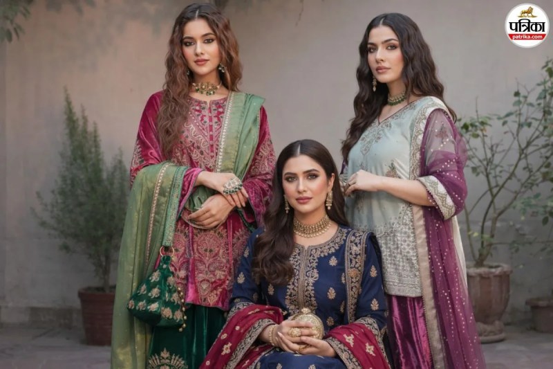 सर्दियों की लोहड़ी में जब रंग-बिरंगे कपड़ों के साथ में यह हरा-नीला कढ़ाई वाला सूट बहुत खास लगता है। इसकी शाही कढ़ाई और गहरे रंग त्योहार के मूड को और खूबसूरत बना सकते हैं। लोहड़ी पार्टी के लिए ऐसा ट्रेडिशनल लुक सबका ध्यान अपनी ओर खींच लेता है।
