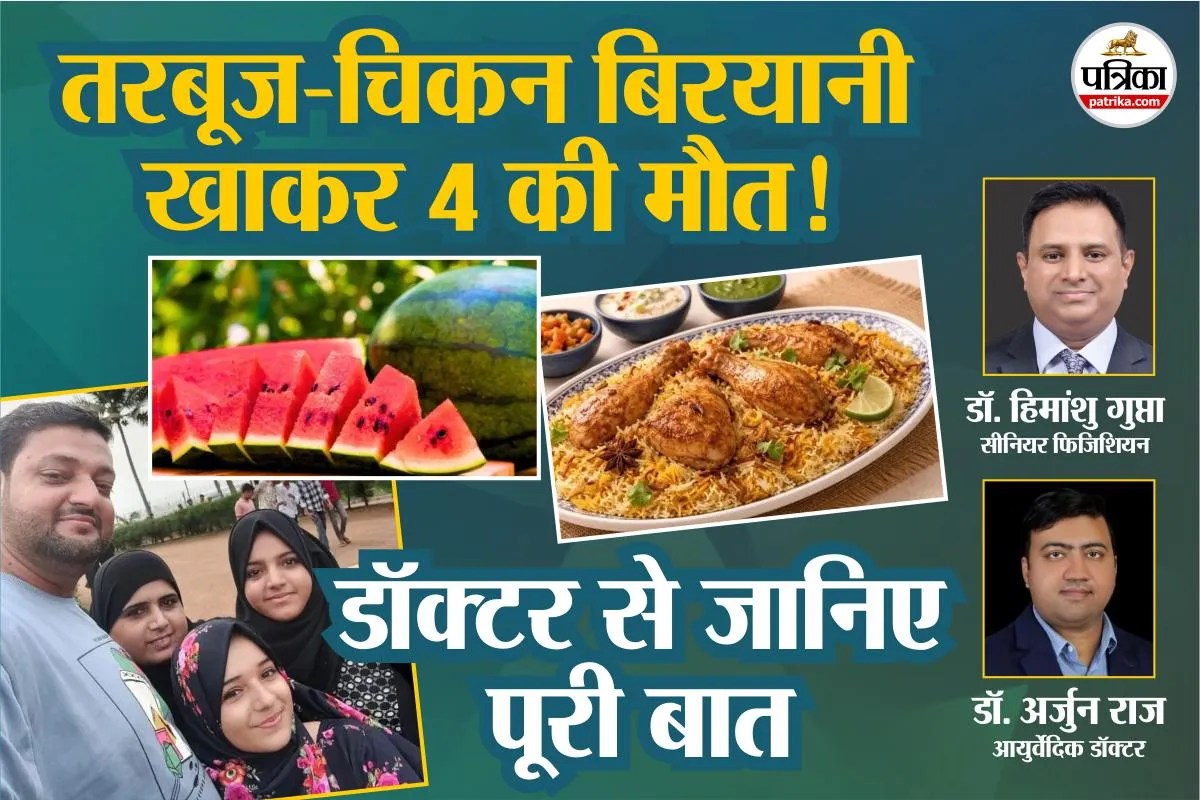पत्रिका के रवि कुमार गुप्ता ने फूड पॉइजनिंग के बारे में डॉ. हिमांशु गुप्ता (सीनियर फिजिशियन) और डॉ. अर्जुन राज (आयुर्वेदिक) से समझा। उन्होंने बताया कि क्यों नॉन वेज और तरबूज जैसे फलों को एक साथ नहीं खाना चाहिए या खाने से बचना चाहिए।