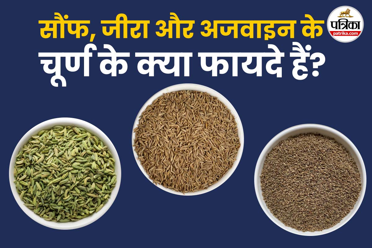Jeera Saunf Ajwain Powder: जीरा, सौंफ और अजवाइन ये तीनों ही भारतीय रसोई में आमतौर पर इस्तेमाल होने वाले मसाले हैं। लेकिन आयुर्वेद में इनका उपयोग केवल स्वाद बढ़ाने के लिए नहीं, बल्कि इनके औषधीय गुणों के लिए भी किया जाता है।इन तीनों का चूर्ण बनाकर सोने से पहले गर्म पानी के साथ लेने से शरीर को कई प्रकार के लाभ मिल सकते हैं, खासकर पाचन तंत्र और संपूर्ण स्वास्थ्य के लिए।अगर रोजाना इसका सेवन किया जाए, तो यह शरीर को अंदर से मजबूत बनाने के साथ-साथ कई सामान्य स्वास्थ्य समस्याओं से भी बचा सकता है।आइए जानते हैं इस घरेलू नुस्खे से होने वाले फायदों के बारे में।