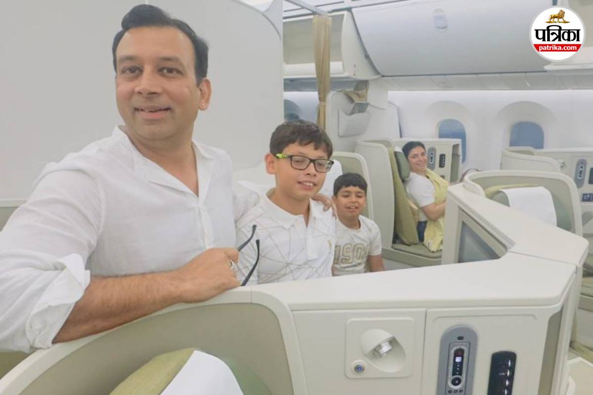 नोएडा के एक सीईओ अपने बच्चों के साथ बिजनेस क्लास में यात्रा करते हुए । (फोटो: Screengrab LinkedIn/@MayankArya)।