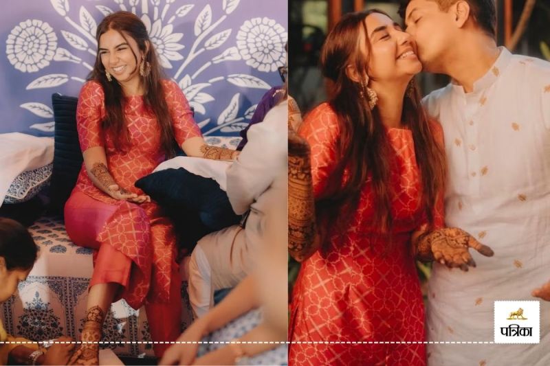 प्राजक्ता कोली के प्री-वेडिंग फंक्शन शुरू हो चुके हैं और 23 फरवरी को उन्होंने अपनी मेहंदी सेरेमनी की तस्वीरें शेयर की। सेरेमनी में एक्ट्रेस के घर पर खुशियों का माहौल देखने को मिला। इस दौरान कपल की कुछ तस्वीरों ने लोगों को दीवाना बना दिया है। प्राजक्ता कोली ने अपनी मेहंदी सेरेमनी में डिजाइनर रेड कलर का सूट पहना था, जिसमें गोल्डन कलर से फ्लोरल प्रिंट था। साथ ही कुर्ती से मैच करता स्ट्रेट पेंट पेयर किया था। इस लुक में इंफ्लूएंसर काफी प्योर और एलिगेंट नजर आ रही थीं।