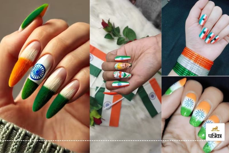 इस डिजाइन में आप तिरंगे के रंगों के अलावा देशभक्ति से जुड़े कई अलग-अलग डिजाइन बना सकती हैं, जैसे सेना की तस्वीर, भारत का नक्शा, या "भारत माता की जय" भी लिख सकती हैं। ये डिज़ाइन न केवल आपके नाखूनों को खूबसूरत बनाएंगे, बल्कि आपकी देशभक्ति को भी उभारेंगे। यह गणतंत्र दिवस के मौके पर अपने नाखूनों को सजाने का एक शानदार तरीका होगा।