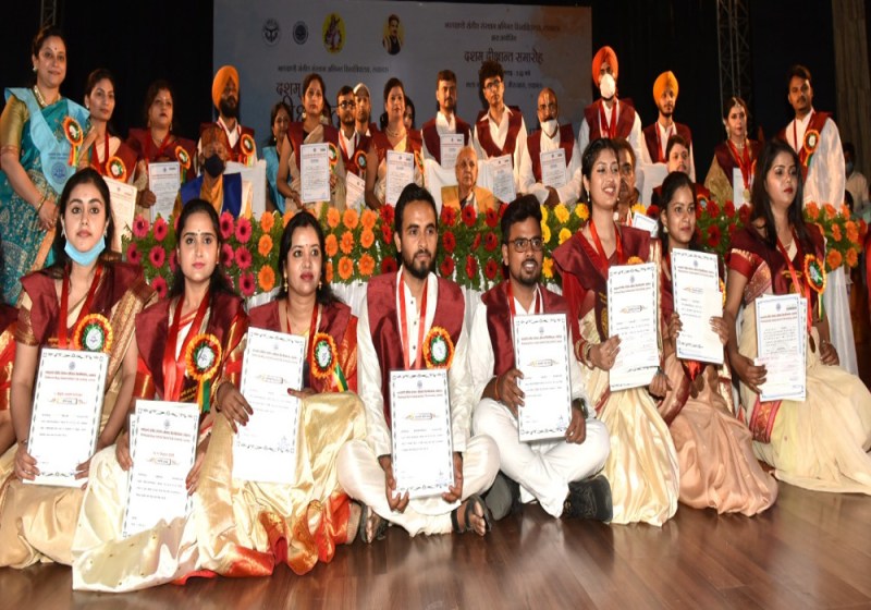 लखनऊः उत्तर प्रदेश की राज्यपाल एवं कुलाधिपति आनंदीबेन पटेल ने भातखण्डे संगीत संस्थान अभिमत विश्वविद्यालय, लखनऊ के 10वें दीक्षान्त समारोह में 6 पीचएडी, 72 परास्नातक, 44 स्नातक समेत कुल 123 डिग्रियां प्रदान की जबकि 44 विद्यार्थियों को मेडल प्रदान किये, जिसमें से महिलाओं को 13 गोल्ड, 5 सिल्वर और 6 काॅस्य पदक प्रदान किये गये। सर्वाधिक छह मेडल उसमीत सिंह को गायन में मिले। राज्यपाल ने दीक्षान्त समारोह को सम्बोधित करते हुए कहा कि प्रत्येक विद्यार्थी का सपना होता है कि वह अपने शैक्षिक संस्थान के उच्चतम सोपान पर स्वयं को अभिषिक्त होता हुआ देख सके। इसीलिये वह शैक्षिक गतिविधियों, पठन-पाठन एवं शोध के यथावश्यक कार्यों में स्वयं को प्राण-पण से सन्नद्ध कर देता है। उसका प्रथम लक्ष्य डिग्री-उपाधि प्राप्त करना और द्वितीय लक्ष्य उस योग्यता के आधार पर जीवन के आगामी लक्ष्य की सम्पूर्ति करना होता है। उन्होंने कहा कि उपाधि प्राप्त करने वाले बच्चे शास्त्रीय संगीत की शिक्षा लेकर प्रदेश ही नहीं, बल्कि देश-विदेश में संगीत की अलख जगाने का कार्य करेंगे।