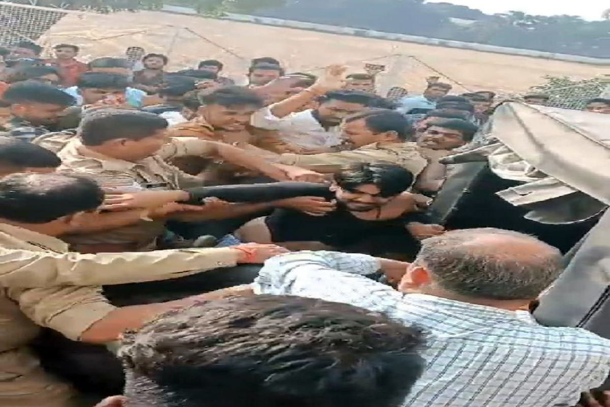 पुलिस के सामने हुई जमकर युवक की पिटाई