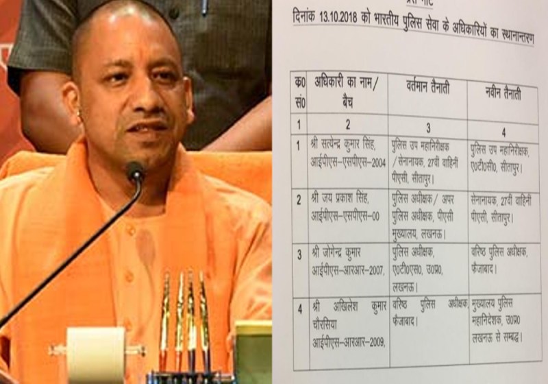 योगी सरकार ने उठाया बड़ा कदम, अानन-फानन में किए 4 IPS अफसरों के किए तबादले