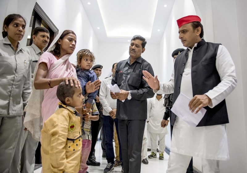 लखनऊ. समाजवादी पार्टी के राष्ट्रीय अध्यक्ष एवं पूर्व मुख्यमंत्री अखिलेश यादव से आज जहां बुद्धिजीवियों, शिक्षकों तथा अधिवक्ताओं ने भेंट की, वही सैकड़ों की संख्या में आम नागरिकांे ने भी भेंटकर अपने ऊपर भाजपा राज में हो रही ज्यादतियों की शिकायतंे की। मल्लापुर गोंडा की श्रीमती कमलेश अपने तीन बच्चों के साथ मिली जो गरीबी के कारण भूख से पीड़ित थे। बच्चे कुपोषण के षिकार थे। सभी बीमार थे। गरीबी की मार उनके चेहरों पर दिखाई दे रही थी। गरीबों को मिलने वाले राशन और छत से वंचित मां-बच्चे अपनी व्यथा बताते हुए फूट-फूटकर रो पड़े। श्री अखिलेश यादव ने उनको सांत्वना दी और आश्वस्त किया कि सरकारी मदद मिले न मिले समाजवादी पार्टी उनकी मदद करेगी।