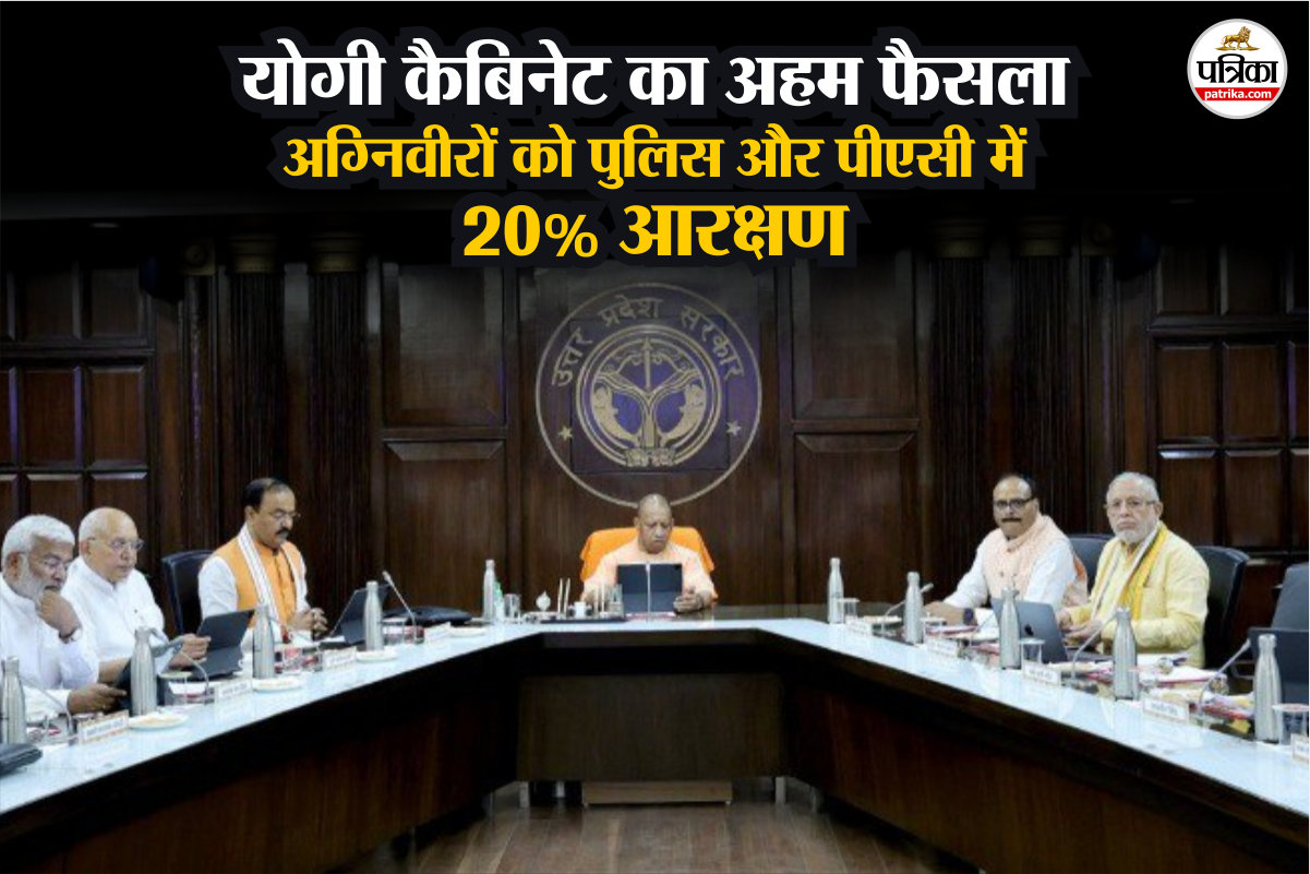 Uttar Pradesh Cabinet Meeting: लखनऊ स्थित लोकभवन में मंगलवार को मुख्यमंत्री योगी आदित्यनाथ की अध्यक्षता में राज्य कैबिनेट की बैठक आयोजित की गई। इस बैठक में कई महत्वपूर्ण प्रस्तावों पर मुहर लगी, जिनमें सबसे खास निर्णय पूर्व अग्निवीरों को लेकर लिया गया।