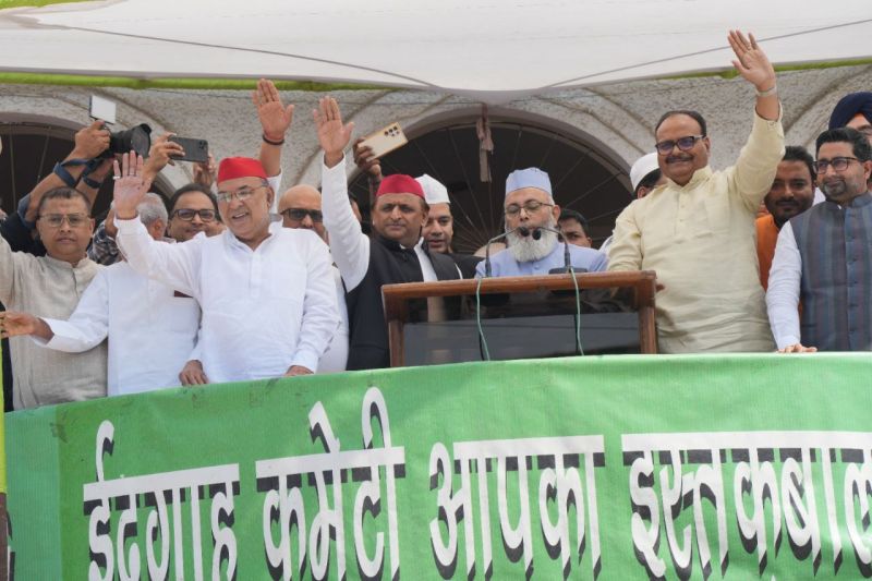 ईद-उल-फितर के मौके पर ऐशबाग ईदगाह में पूर्व मुख्यमंत्री अखिलेश यादव और डिप्टी सीएम बृजेश पाठक