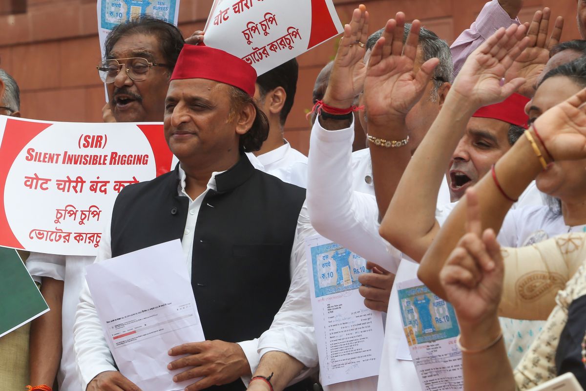 लखनऊ : संसद में एसआईआर प्रक्रिया पर गतिरोध लगातार जारी है। विपक्ष ने मंगलवार को भी एसआईआर प्रक्रिया में गड़बड़ी और 'वोट चोरी' के आरोप लगाते हुए चुनाव आयोग के खिलाफ प्रदर्शन किया। इसमें कांग्रेस के राष्ट्रीय अध्यक्ष मल्लिकार्जुन खड़गे, सांसद प्रियंका गांधी और सपा प्रमुख अखिलेश यादव समेत 'इंडिया' ब्लॉक के नेता शामिल थे।