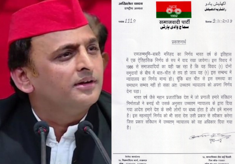 सपा अध्यक्ष ने आगे कहा कि वास्तव में इस निर्णय को हमारे देश के धर्मनिरपेक्ष स्वरूप और रुल ऑफ लॉ तथा प्रजातंत्र को सुदृढ़ करने की ओर एक महत्वपूर्ण कदम साबित होगा। अतः हम यह आशा करते हैं कि देश के सभी लोग शांतिपूर्ण वातावरण सौहार्द बनाए रखेंगे और किसी भी समुदाय के लोग ऐसा कार्य नहीं करेंगे जिससे दूसरे समुदाय की भावनाओं को ठेस पहुंचे या किसी प्रकार का साम्प्रदायिक तनाव पैदा हो।