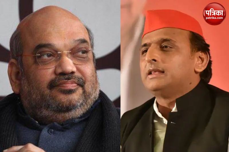 बाएं से अमित शाह दाएं में अखिलेश यादव