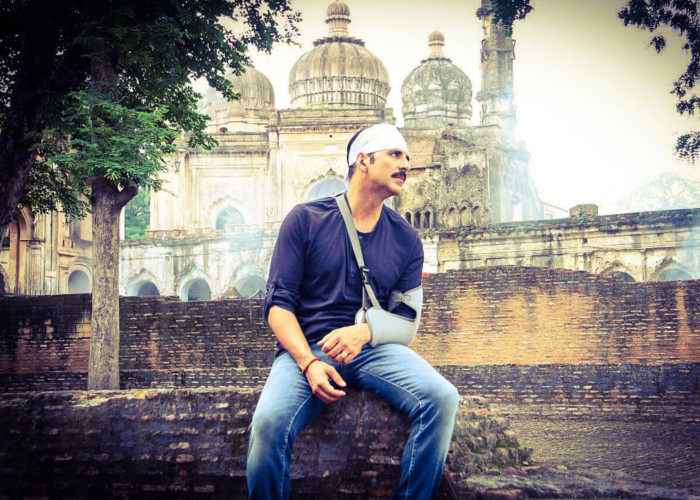अक्षय ने शनिवार अलसुबह एक ट्वीट किया जिसमें उन्होंने लिखा कि वे अपनी फिल्म का आखिरी सीन शूट करने जा रहे हैं।अक्षय ने इसके साथ जो तस्वीर शेयर की थी उसने लोगों का ध्यान ज्यादा खींचा क्योंकि उसमें उनके बाएं हाथ में टैम्परेरी प्लास्टर और सिर में पट्टी थी।