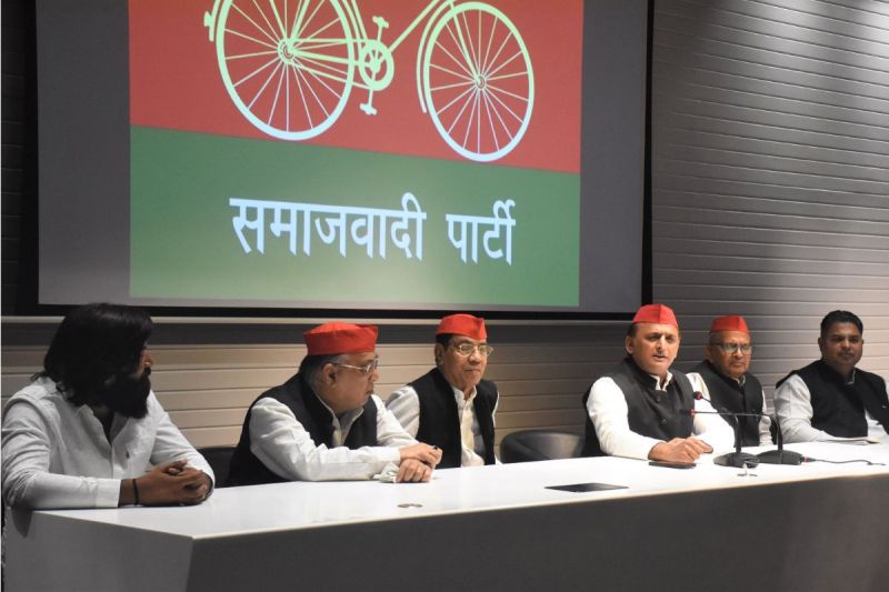 प्रेस वार्ता में अखिलेश यादव के साथ मंच पर आरिफ(सबसे बायें)
