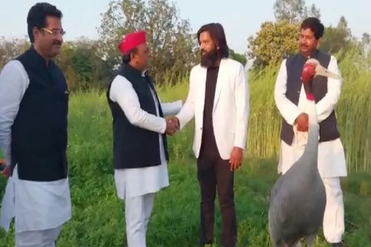 सपा प्रमुख अखिलेश यादव के साथ आरिफ और उनका सारस