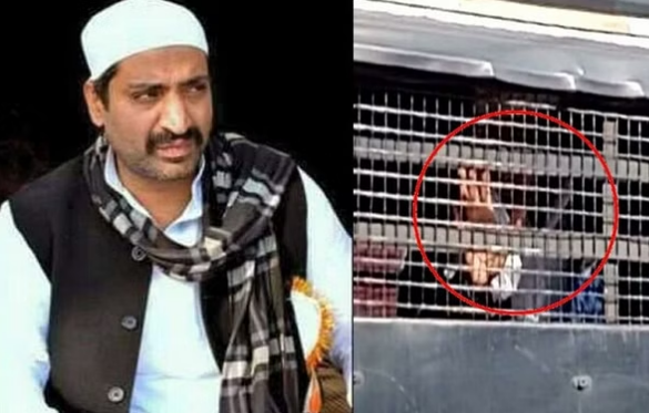 अशरफ गाड़ी में बैठकर हाथ हिलाता हुआ