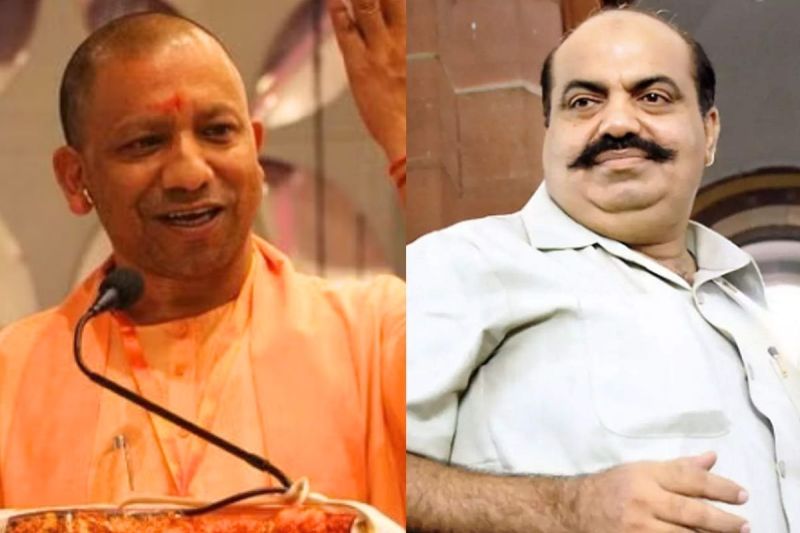 बाएं से सीएम योगी आदित्यानाथ दाएं में अतीक अहमद