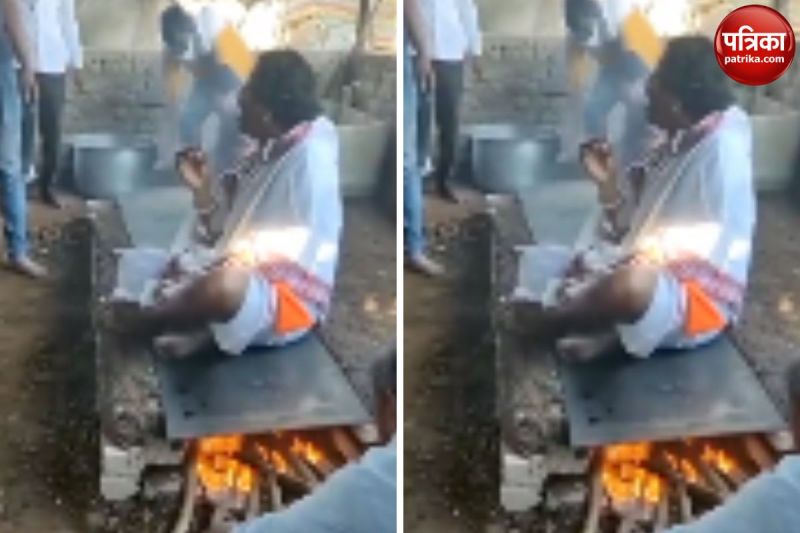 वीडियो में बाबा चूल्हे के उपर रखे लोहे के बड़े से तवे पर बैठ जाते हैं। सिर्फ इतना ही नहीं, बाबा आग पर बैठकर बड़े ही मजे से बीड़ी पी रहे हैं। वीडियो देख कर ऐसा लग रहा है मानो बाबा को जलती आग से कोई फर्क ही नहीं पड़ रह है। बाबा के आसपास कई लोग मौजूद हैं। कुछ तो वीडियो में बाबा का आशीर्वाद भी ले रहे हैं। ये वीडियो कहां का है, अभी तक पता नहीं चल पाया है।