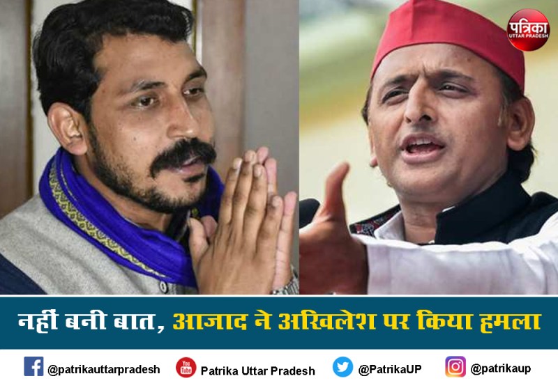 भीम आर्मी प्रमुख चंद्रशेखर आजाद ने अखिलेश यादव पर जमकर हमला बोला इस दौरान चंद्रशेखर आजाद ने कहा कि अखिलेश यादव दलितों को साथ में लेकर नहीं चलना चाहते हैं। मेरा यह मानना था कि विपक्ष को एकजुट किया जाए व किसी भी हाल में भाजपा को जीतने न दिया जाए इसलिए मैं समझौता करने को तैयार था। लेकिन मेरे इस बलिदान को सकारात्मक तरीके से नहीं लिया गया। समाजवादी पार्टी के साथ कई मुद्दों पर सहमति नहीं बन सकी है।