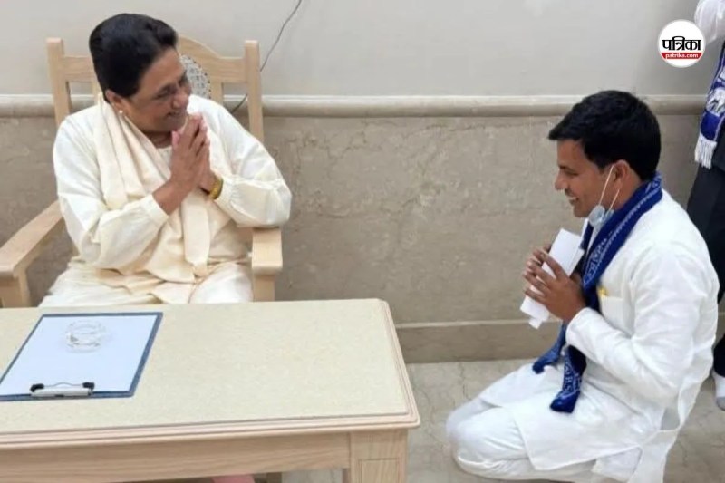 लखनऊ : लखनऊ के बहुजन समाज पार्टी के कार्यालय की एक तस्वीर खूब चर्चाओं में है। वजह है बसपा के विधायक का मायावती के सामने घुटने टेककर बैठना। हाथ जोड़े हुए और पैरों में सिर्फ मोजे, चेहरे पर गंभीरता का भाव। यह इमोशनल मोमेंट बिहार के रामगढ़ से बसपा के नवनिर्वाचित विधायक सतीश कुमार सिंह उर्फ 'पिंटू यादव' का है जो कि दिल्ली के बसपा मुख्यालय में हुआ।