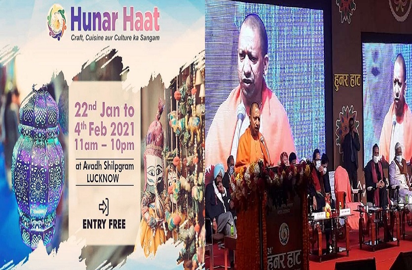 लखनऊ. राजधानी लखनऊ के अवध शिल्प ग्राम में शनिवार से हुनर हाट (Hunar Haat) का आयोजन शुरू हो गया है। यह आयोजन 4 फरवरी तक चलेगा। हुनर हाट सज-धजकर पूरी तरह तैयार है। देश के 31 राज्यों और केंद्र शासित प्रदेशों के दस्तकारों, शिल्पकारों के उत्पादों से सुसज्जित 24 वें हुनर हाट का उद्घाटन शनिवार ( 23 जनवरी) को मुख्यमंत्री योगी आदित्यनाथ (CM Yogi Adityanath) ने किया। इस अवसर पर उनके साथ केंद्रीय अल्पसंख्यक कल्याण मंत्री मुख्तार अब्बास नकवी भी मौजूद रहे। मुख्यमंत्री ने इस दौरान वहां मौजूद हजारों हुनरमंद को संबोधित किया और कहा कि हम आत्मनिर्भर भारत के प्रधानमंत्री नरेंद्र मोदी के संकल्प को पूरा करेंगे। उत्तर प्रदेश के वन डिस्ट्रिक वन प्रोडक्ट (ओडीओपी) ने भारत के परम्परागत उद्यम को दुनिया के विभिन्न देशों तक पहुंचाने का कार्य किया है। इस बार का हुनर हाट इसलिए भी महत्वपूर्ण है क्योंकि इसमें ओडीओपी को भी जोड़ने का कार्य किया गया है। यह परम्परागत उद्यम को प्रोत्साहित कर रहा है।