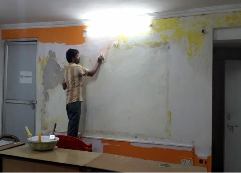कांग्रेस प्रदेश मुख्यालय की 'भगवा दीवार' अब हुई सफेद