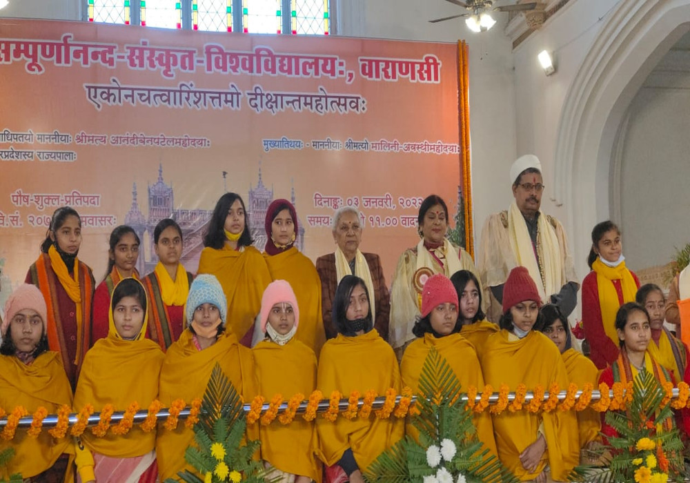 विश्वविद्यालय के कुलपति प्रोफेसर हरेराम त्रिपाठी ने बताया कि सन् 1791 में संस्कृत कालेज के रूप में स्थापित यह संस्था 22 मार्च 1958 से वाराणसी संस्कृत विश्वविद्यालय एवं 1973 से सम्पूर्णानंद संस्कृत विश्वविद्यालय के रूप में अनेक सोपान पार करते हुये वर्तमान में अपने उद्देश्यों की ओर अग्रसर है। उन्होंने बताया कि वर्तमान में पुस्तकालय एवं परीक्षा प्रणाली का डिजिटलाइजेशन किया जा रहा है। जिससे विद्यार्थी ऑनलाइन परीक्षा आवेदन तथा अन्य सुविधाएं प्राप्त कर सकेंगे। राज्यपाल ने कार्यक्रम की मुख्य अतिथि मालिनी अवस्थी को डी-लिट की मानद उपाधि से सम्मानित किया तथा प्राथमिक विद्यालय से आये बच्चों को पठन-पाठन सामग्री, बैग और पौष्टिक आहार वितरित किया।