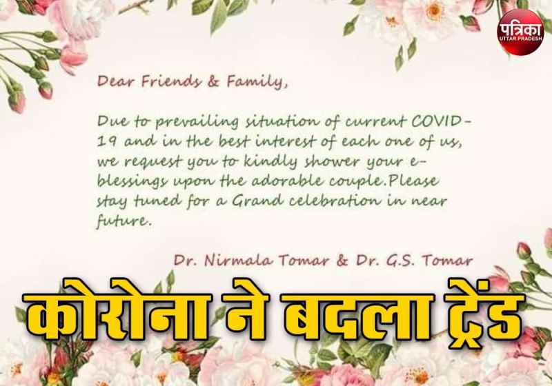 शादियों का सीजन शुरू हो चुका है। लेकिन, कोरोना वायरस के कारण सामान्य जनजीवन प्रभावित होने के साथ ही शादियों का रंग भी फीका पड़ता दिख रहा है। सरकार के निर्देशों के मुताबिक, शादी समारोह में महज 100 लोग ही शामिल हो सकते हैं। ऐसे में मेजबानों के सामने दिक्कत है कि शादी में किसे बुलाएं और किसे नहीं। लोग शादी का कार्ड तो भेज रहे हैं, पर साथ में अलग-अलग मैसेज भी दे रहे हैं।