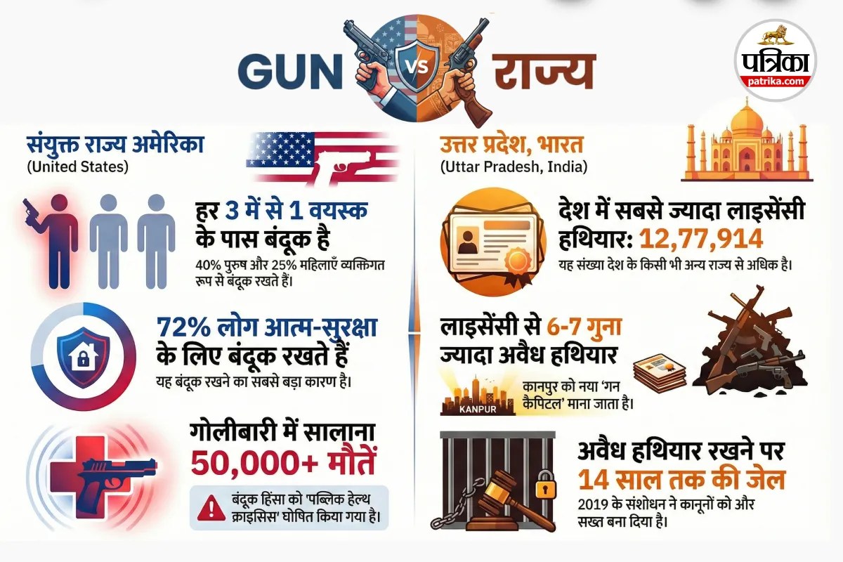 यूपी (उत्तर प्रदेश) हो या यूएस (अमेरिका), गन कल्चर से दोनों परेशान हैं। दोनों ही जगह लोगों को बंदूक से ‘प्यार’ है। यूपी में बंदूक रखना रसूख और ताकत की निशानी है तो यूएस में सुरक्षा का भरोसा। यूपी के गन कल्चर का खौफनाक पहलू यह है कि यहां अवैध हथियारों की बहुतायत है।
