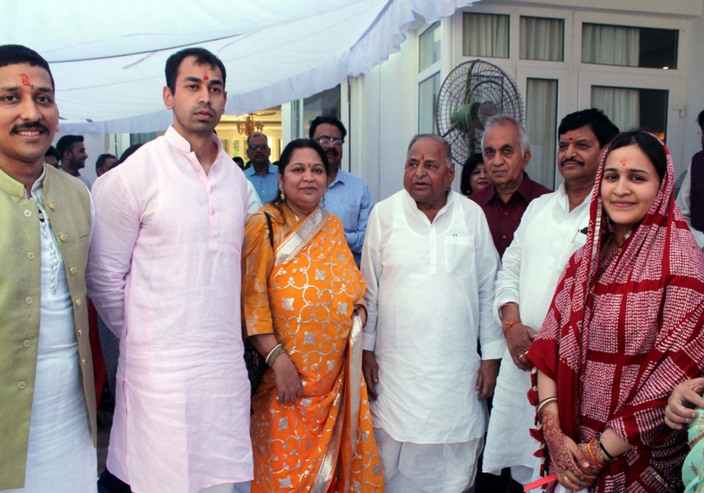 वहीं थोड़ी देर में सपा संरक्षक मुलायम सिंह यादव व भाई शिवपाल यादव भी वहां पहुंचे। दोनों ने प्रतीक यादव व पत्नी अपर्णा यादव को आशीर्वाद दिया। शिवपाल इस दौरान मुलायम सिंह यादव के साथ काफी देर तक वहां मौजूद रहे। इसके अलावा गृह प्रवेश के कार्यक्रम में मुलायम की पत्नी साधना, अपर्णा के भाई अमन सिंह बिष्ट व उनकी पत्नी समेत परिवार के कई लोगों ने अपनी उपस्थिति दर्ज कराई। आखिर में समाजवादी पार्टी के सबसे बड़े परिवार के लोगों ने कई तस्वीरें भी खिंचवाई।