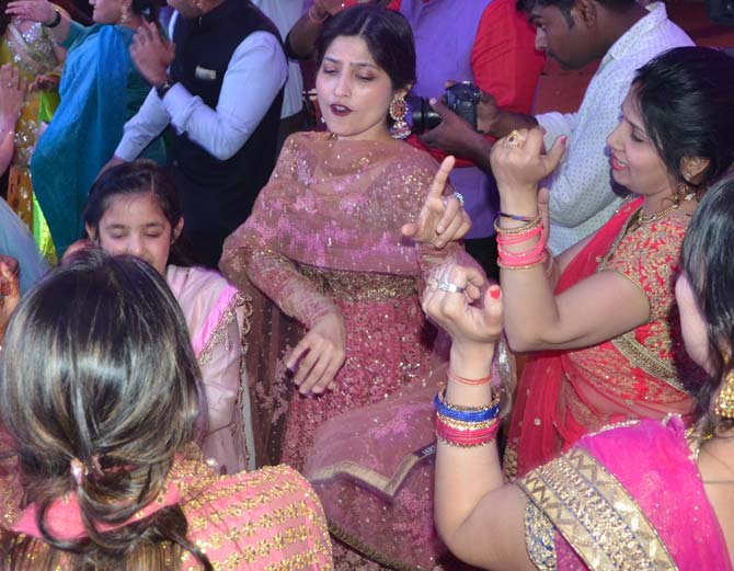 मुलायम सिंह के भांजे और शिवपाल यादव के बेटे आदित्य की शादी की संगीत सेरेमनी में जमकर डांस और मौज-मस्ती हुई। आदित्य की भाभी डिंपल यादव ने इस सेरेमनी में जमकर ठुमके लगाए और अपने साथ आदित्य की मां सरला, बहन अनुभा, भाभी मृदुला को भी डांस करने पर मजबूर कर दियाल। आमतौर पर शांत रहने वालीं डिपंल यादव ने इस समारोह में जमकर डांसिंग मूव्स दिखाए। इस दौरान एक चेहरा और था जिसकी चर्चा चारों और थी। वह कोई और नहीं बल्कि मशहूर सिंगर कनिका कपूर थीं। कनिका ने एक के बाद एक हिट गाने गाकर आदित्य की संगीत सेरेमनी में चार चांद लगा दिए।