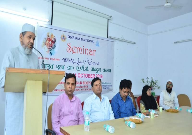 लखनऊ, अहबाब फाउंडेशन एवं लखनऊ विश्वविद्यालय के उर्दू विभाग के संयुक्त तत्वावधान में डा0 ए.पी.जे अब्दुल कलाम के जन्मदिन के अवसर पर एक दिवसीय संगोष्टी का आयोजन उर्दू विभाग के मसूद हसन रिज़वी हाल में हुआ। इस कार्यक्रम में मुख्य अतिथि पदमश्री आसिफा ज़मानी, कार्यक्रम की अध्यक्षता प्रो0 अब्बास रज़ा नय्यर उर्दू विभागाध्यक्ष ने की। विशिष्ठ अतिथि व वक्ताओं में मौलाना इक़बाल अहमद आज़मी मदनी, वैज्ञानिक हरमेश चौहान, डा0 असमत मलिहाबादी, डा0 तबस्सुम ख़ान और डा0 अंजु सक्सेना उपस्थित थे। स्वागत समिति के सचिव सलमा ख़ान और मोहम्मद तौक़ीर ने मेहमानों का स्वागत पौधा भेंट करके किया। कार्यक्रम का संचालन डा0 मसीउद्दीन ख़ान ने किया।
