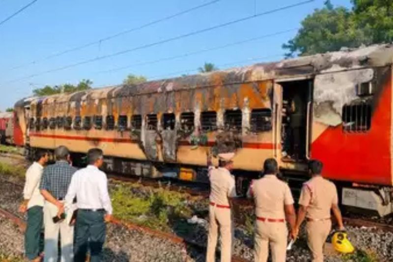 लखनऊ से रामेश्वरम जा रही ट्रेन में लगी भीषण आग