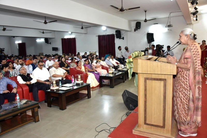 उत्तर प्रदेश की राज्यपाल आनंदीबेन पटेल ने आज विद्या भारती उच्च शिक्षा संस्थान से सम्बद्ध रजत पी.जी. कॉलेज, लखनऊ में नवनिर्मित बैडमिंटन एकेडमी का लोकार्पण किया। इस अवसर पर परिसर के सभागार में ‘राष्ट्र निर्माण के संदर्भ में अतीत का पुनरावलोकन आयाम एवं चुनौतियां’ विषय पर आयोजित राष्ट्रीय संगोष्ठी में राज्यपाल ने कहा कि शिक्षण संस्थानों को अपने छात्रों में विश्व स्तर पर देश-विदेश तक दायित्वों का निर्वहन करने की क्षमता का निर्माण करना चाहिए। आज भारतीय युवा विदेशों में महत्वपूर्ण दायित्वों पर आगे आकर प्रतिबद्धता के साथ कार्य कर भी रहे हैं। ऐसे दायित्व निर्वहन के लिए विश्वविद्यालयों में भी प्रशिक्षण दिया जाना चाहिए।