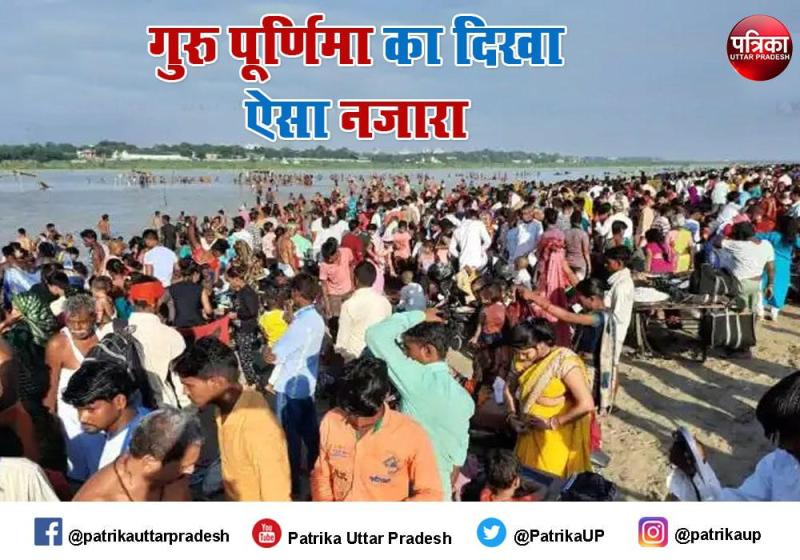 लखनऊ. गुरु पूर्णिमा (Guru Purnima 2021) के पावन मौके पर प्रदेश के विभिन्न जिलों में श्रद्धालुओं ने गंगा (Ganga River) सहित अन्य नदियों में आस्था की डुबकी लगाई। इस दौरान कोरोना पर आस्था भारी दिखी। घाट हों या मंदिर, लोगों ने सोशल डिस्टेंसिंग की खूब धज्जियां उड़ाई। कई जिलों में नदियों के घाटों पर आस्था का सैलाब टूट पड़ा। उन्नाव, कन्नौज, अयोध्या, वाराणसी समेत कई जिलों में श्रद्धालु सुबह से ही पहुंचने लगे थे। सभी ने नदी में डुबकी लगाई व गुरु का दर्शन कर आशीर्वाद लिया।