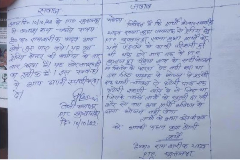 उत्तर प्रदेश के पुलिस महकमे में आए दिन ड्यूटी में लापरवाही के मामले सामने आते रहते हैं। इसी कड़ी लखनऊ के एक हेड कांस्टेबल से लापरवाही करने पर स्पष्टीकरण मांगा गया तो उन्होंने ऐसा जवाब दिया कि वह वायरल हो गया है। उन्होंने ड्यूटी के दौरान सोते पाए जान पर जवाब में लिखा कि साहब... सुबह के खाने में 25 रोटी, 1 थाली चावल, 2 कटोरी दाल और 1 कटोरी सब्जी खाने में खाया था। इसलिए प्राथी को सुस्ती आ गई थी और मैं सो गया था। भविष्य में आगे से कभी इतनी मात्रा में भोजन नहीं करूंगा। पुलिस विभाग की तरफ से मांगा गया यह स्पष्टिकरण अब तेजी से वायरल हो रहा है।