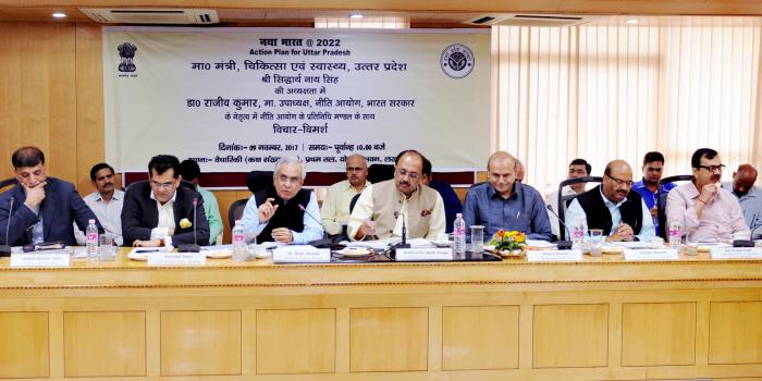 स्वास्थ्य मंत्री ने नीति आयोग को अवगत कराया कि उत्तर प्रदेश देश का सर्वाधिक जन संख्या वाला प्रदेश है। पिछले सात महीनों के दौरान राज्य सरकार ने स्वास्थ्य सेवाओं की कमियों को दूर किया है। इसके साथ ही खाली पड़े प्राथमिक एवं सामुदायिक स्वास्थ्य केन्द्रों पर चिकित्सकों को उपलब्धता सुनिश्चित करने के लिए 2800 आयुर्वेद के चिकित्सकों को तैनात करने का निर्णय लिया है। साथ ही 1000 एमबीबीएस चिकित्सकों को संविदा पर रखे जाने की प्रक्रिया शीघ्र ही शुरू की जायेगी। सभी अस्पतालों की सेवाओं को अत्याधुनिक बनाने के लिए नवीन तकनीकि का सहारा लिया जा रहा है। इसके अलावा स्वास्थ्य सेवाओं को और उपयोगी तथा कारगर बनाने के लिए निजी क्षेत्र के सहयोग लिये जाने पर भी विचार करने के साथ ही निजी चिकित्सा विशेषज्ञों को हायर करने की कार्यवाही की जा रही है।